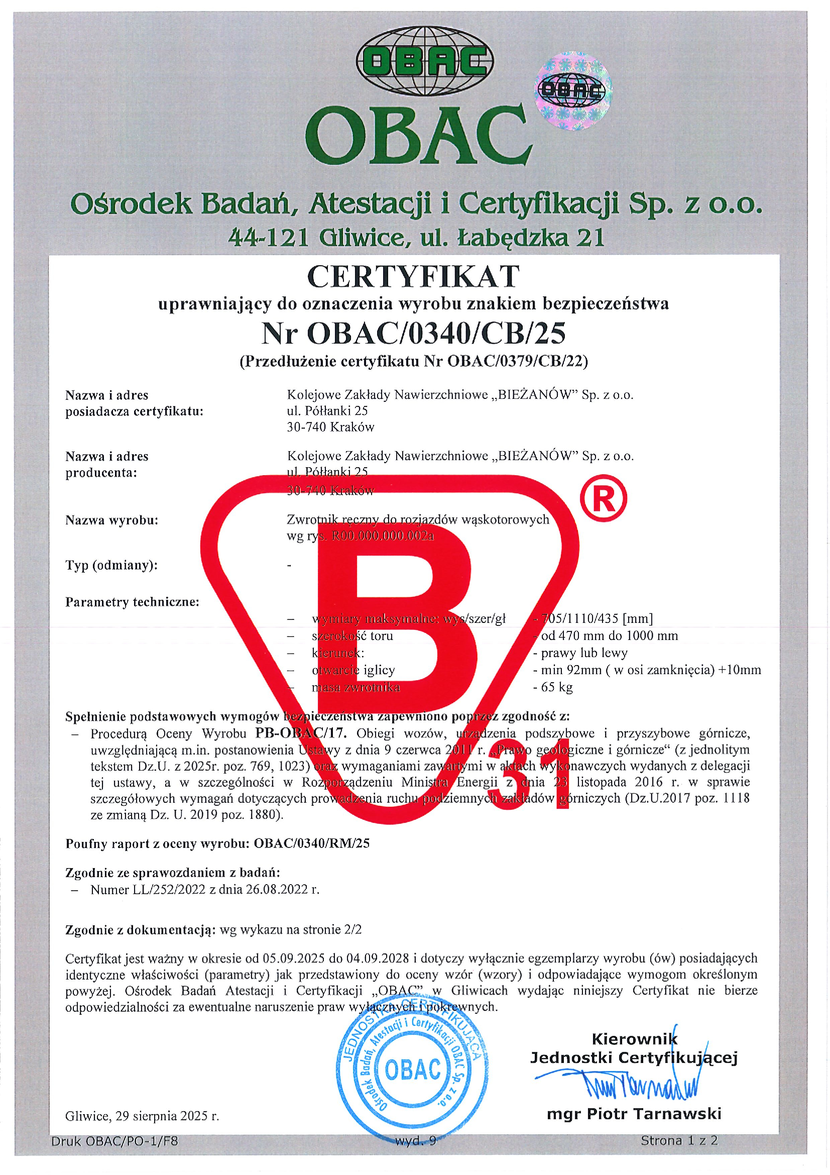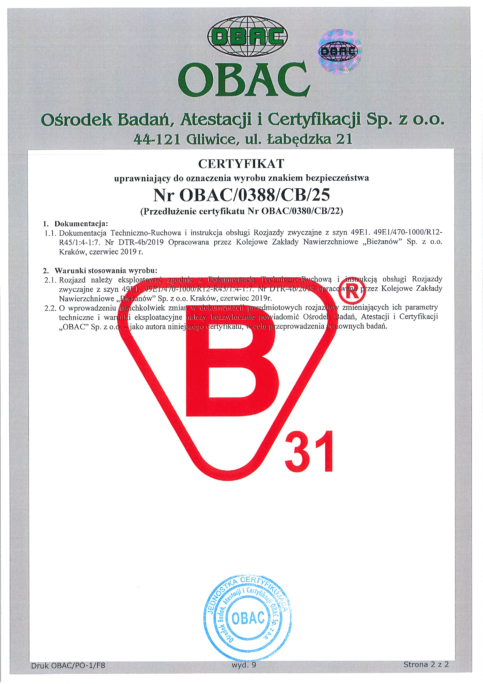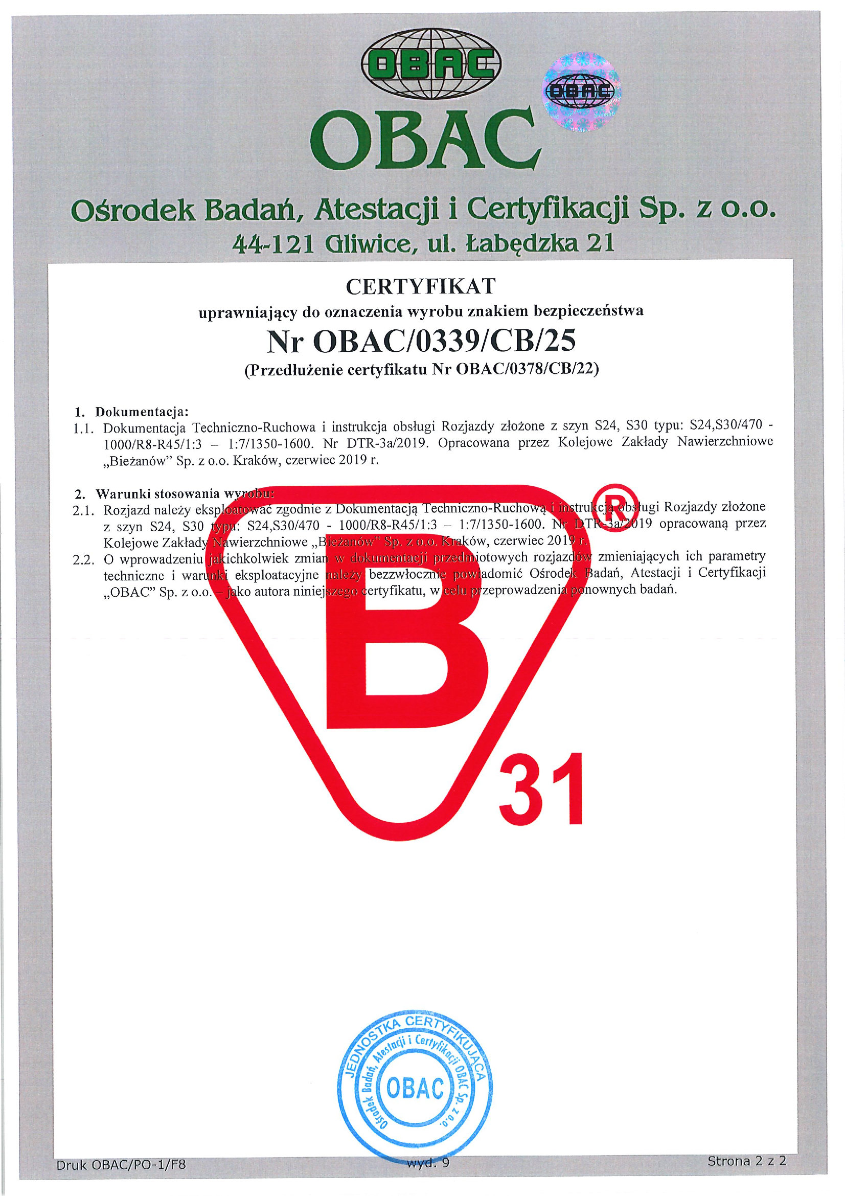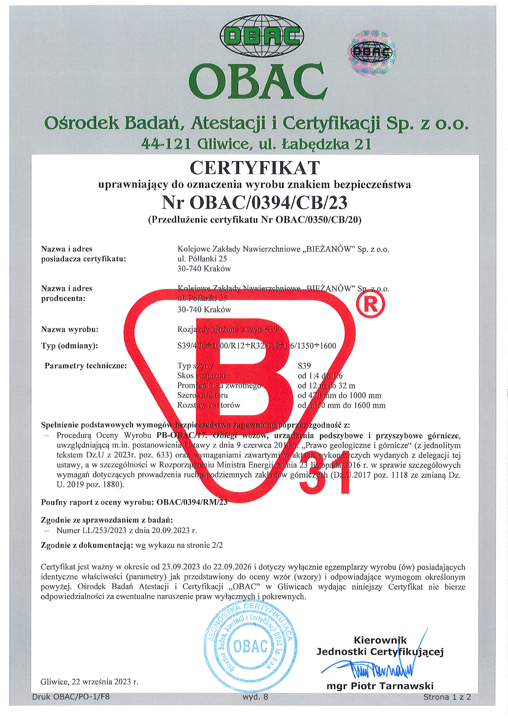 Operating in the industry, where quality, technical reliability and repeatability translates directly the level of security of people and goods, use certification systems to confirm the high standards of our products. Certificates enable us to provide products to the markets of railway, trams and steel bridge construction.